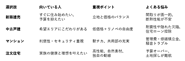 20代・30代の夫婦が重視する「予算・時短・こだわり・資産価値」の観点から整理します。