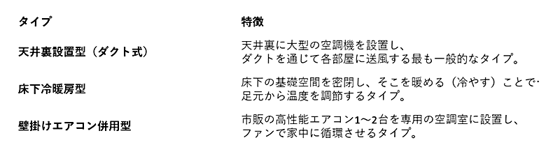 1. 全館空調の主な「3つの種類」